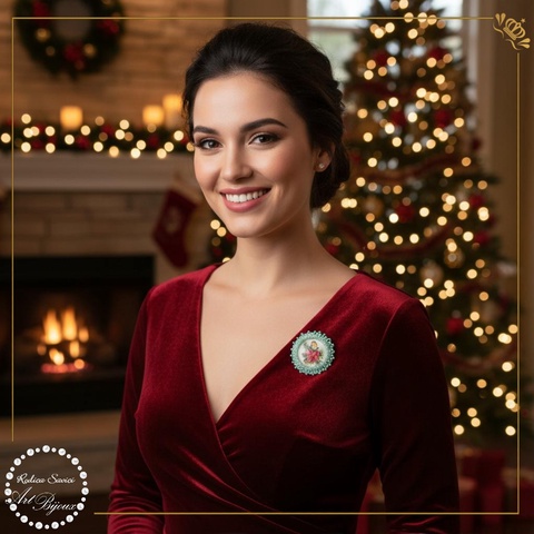 - Material: cabochon sticlă, mărgele, ac de broșă cu sistem de siguranță