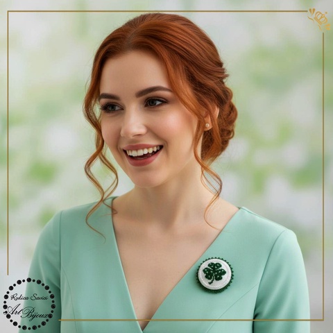 - Material: mărgele, ac de broșă cu sistem de siguranță, broderie