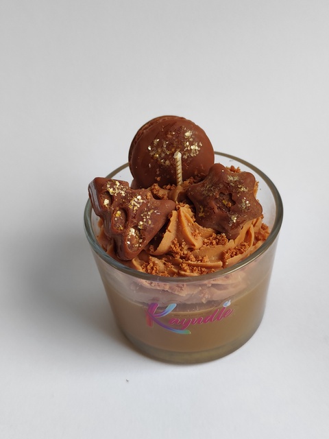- Material: ceară de soia, parfum de panettone și ciocolată