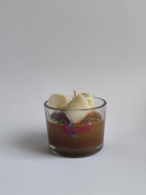 - Material: ceară de soia, parfum de ciocolată și marshmallows