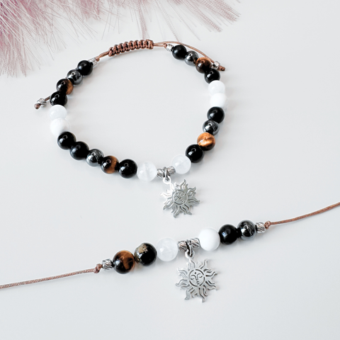Set colier si bratara cu cristale impotriva energiilor negative si pandantiv soare - Argintiu