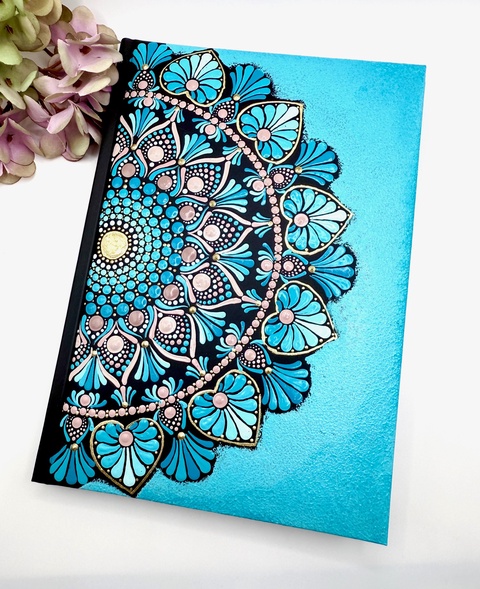 - Material: coperta piele ecologica, vopsea acrilica profesionala, lac lucios, ambalaj cutie kraft