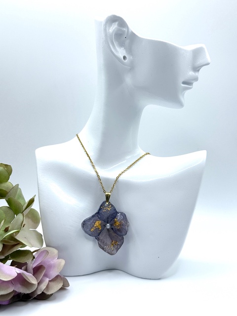 Pandantiv Floral cu Hortensie Naturală – Rășină UV si Oțel Inoxidabil