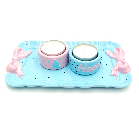 Set decorativ bleu, tavita cu fundite si lumanarele, 4569
