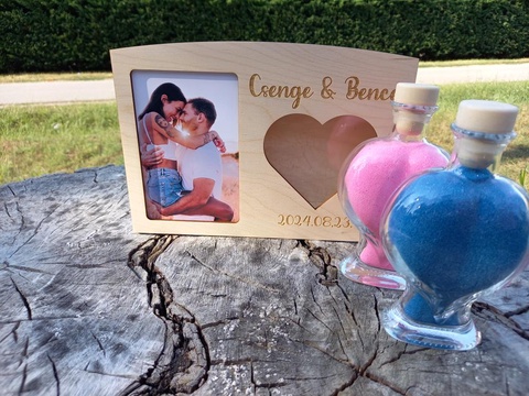 Creați simbolul eternității la nunta voastră cu acest superb set pentru Ceremonia Turnării Nisipului de Nuntă. Atunci când două vieți se unesc și, în spiritul eternității, două nisipuri sunt turnate împreună. Puteți alege varianta vopsită, care se armonizează cu schema cromatică a nunții, sau varianta naturală, ce sugerează o eleganță atemporală. Cutia este ușor de utilizat, astfel încât poate fi folosită simplu și cu demnitate în timpul ceremoniei. Comandați acum și creați sentimentul eternității la nunta voastră! Vă rugăm să ne scrieți în mesaj monogramele/numele și data, precum și culoarea nisipului. Culori nisip: ALBASTRU, ROZ, MENTĂ, MARO, ROȘU, ALB, VERDE