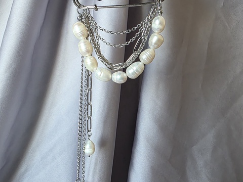 Brosă cu perle de cultură și lanțuri din oțel inoxidabil