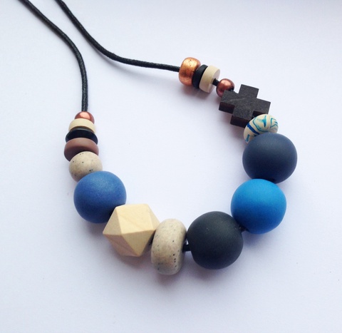 Colier albastru, colier contemporan artizanal colier statement colier geometric bijuterie moderna pentru birou