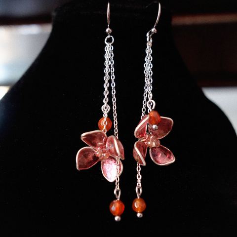 Cercei florali cu Agat roșu