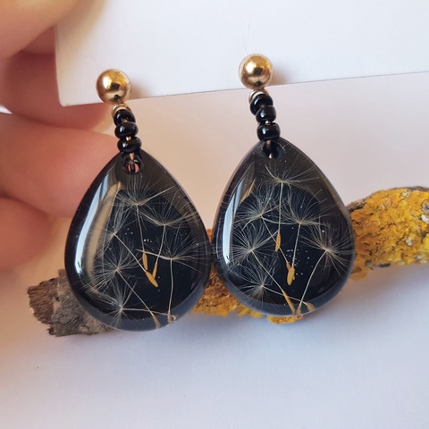 Cercei lacrima cu papadie naturale cercei din rasina cercei moderni cercei cu seminte papadie cercei hippie