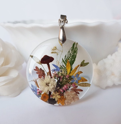 Colier flori handmade Pandantiv unicat din rasina flori naturale buchet flori colier flori presat cadou femeie iubita