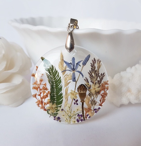 Colier flori handmade Pandantiv unicat din rasina flori naturale buchet flori colier flori presat cadou femeie iubita