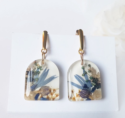 Cercei lungi cu flori albastre naturale cercei din rasina cercei moderni cercei cu albastrele cercei hippie