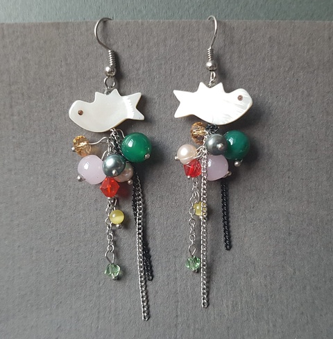 Cercei lungi cluster cercei pasare cercei cu pietre semipretioase atarnatori cercei hippie pasare cadou iubita martie