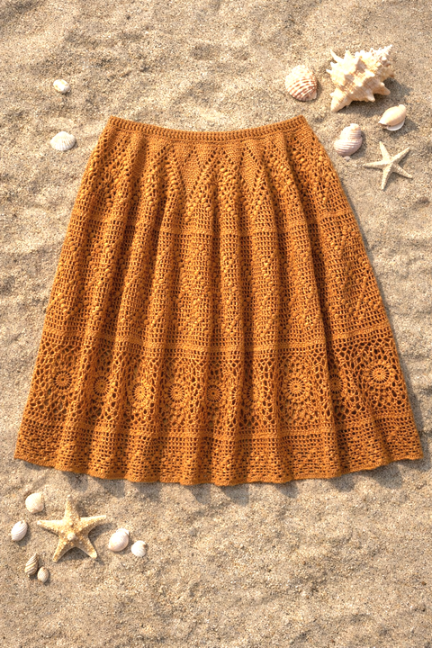 Fustă croșetată manual din bumbac Copper Summer