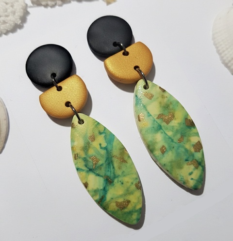 Cercei moderni fimo Cercei lungi cercei hoops cercei negri verzi cercei atarnatori geometrici bijuterie moderna cadou