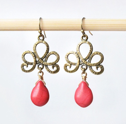 Cercei candelabru rosii cercei boho cercei cercei spirituali yoga Cercei cu piatra roz, cercei atarnatori