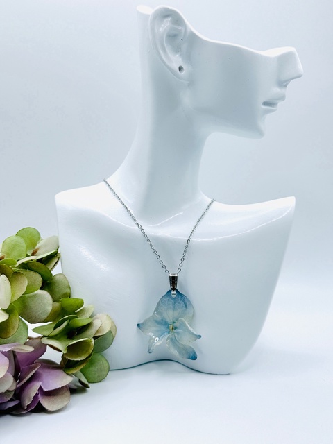 - Material: rasina uv, floare naturala de hortensie, otel inoxidabil