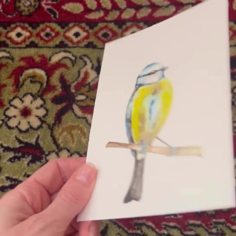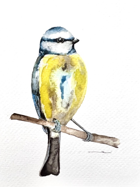 pictură originală în acuarelă de piţigoi pasăre