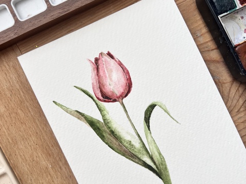 pictură originală în acuarelă de floare