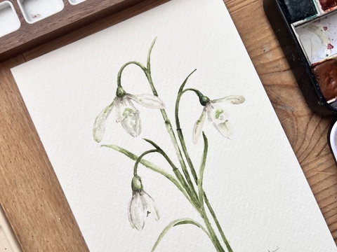 pictură originală în acuarelă de floare