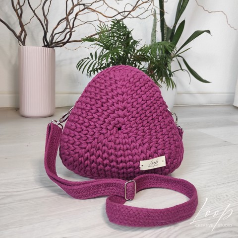 Geantă triunghiulară croșetată, purtată pe umăr – piesă unică realizată manual, în culoarea amarant