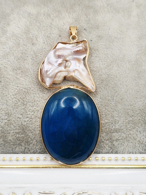 Pandantiv agata albastra cu scoica cu perle 65x31mm - 1 buc