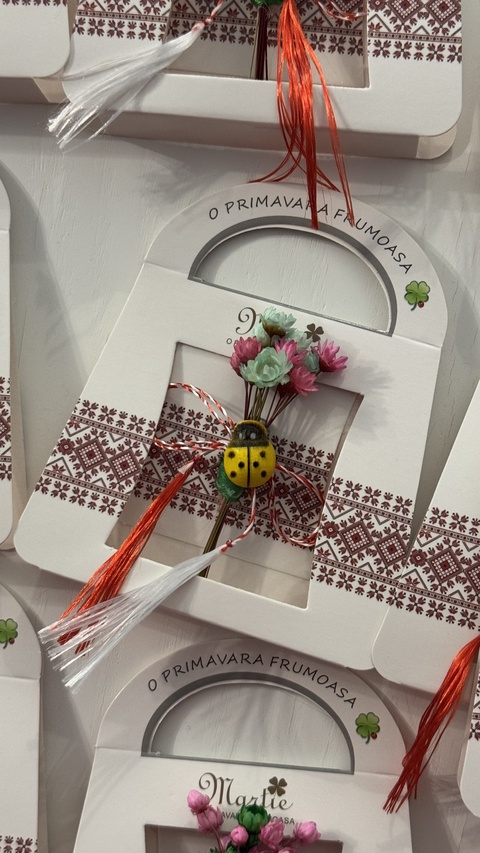 - Material: plante uscate, sistem de închidere, panglica, buburuză, fir mărțișor