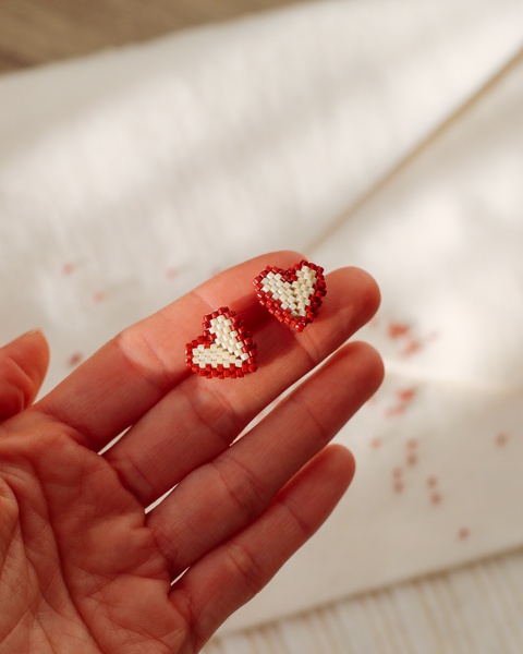Cercei inimioara alb si rosu