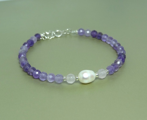 Bratara ametist, perla si cuart.