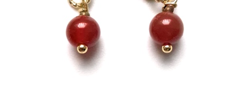 Cercei mici auriti cu margele de carneol rosu