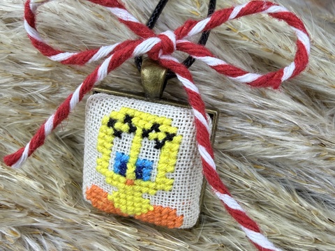 Colier cu pandantiv patrat cusut