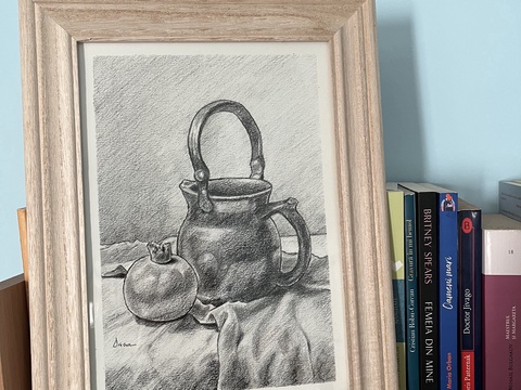 Desen în creion - ulcior cu rodie
