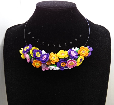 Set bijuterii handmade - flori multicolore colier și cercei (cod1376)