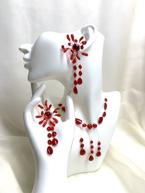 - Material: cristale, guta pentru bijuterii, inox, rasina