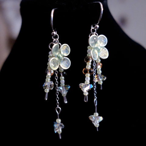 - Material: rășină poliuretanică, tortițe oțel inoxidabil, sârmă cupru argintată, mărgele sticlă, componente oțel inoxidabil