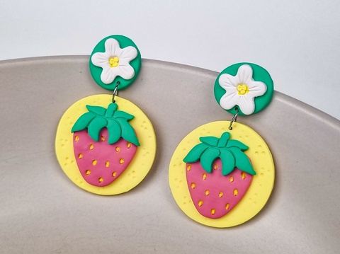 Cercei Căpșuni – Bijuterii handmade din lut polimeric, inspirație de vară