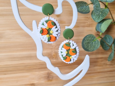 Cercei Citrus cu Flori de Portocal – Bijuterii handmade din lut polimeric, inspirație din natură