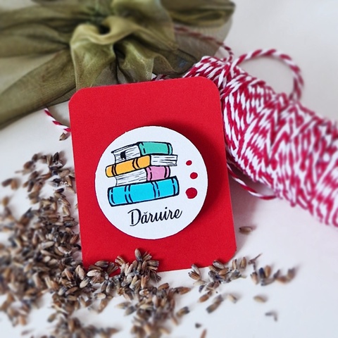 Martisor brosa Carti pictat manual cu text handmade