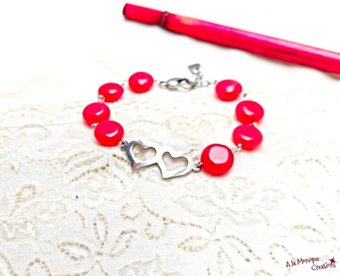 Bratara cu inimi si jad rosu