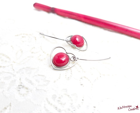 Cercei cu inimioare si jad rosu