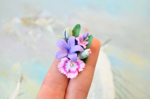 Garofita, zambila si lavanda - Brosa martisor