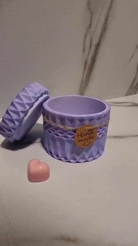 Recipient Ceramic cu Capac Înfiletabil Design Geometric Mov Pastel