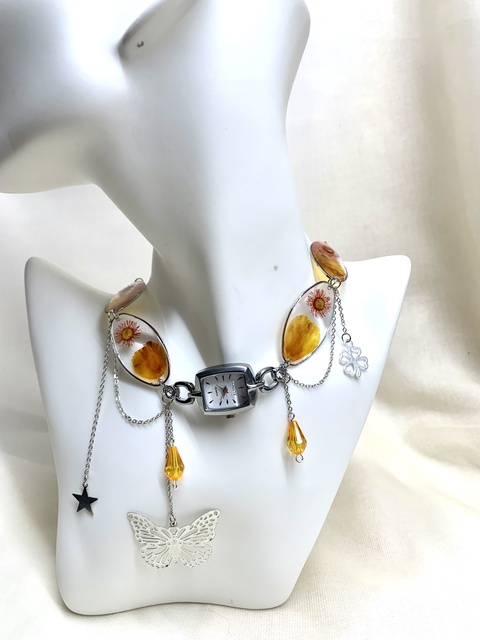 Colier-pandantiv cu flori naturalei si ceas 01345