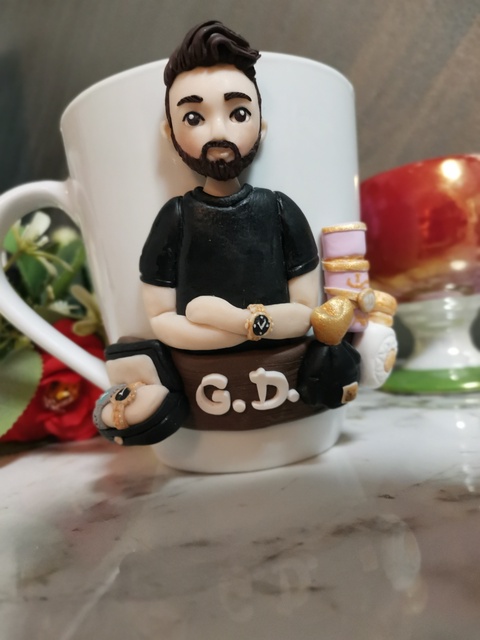 Cana personalizata cu figurina stilizata barbat si accesorii