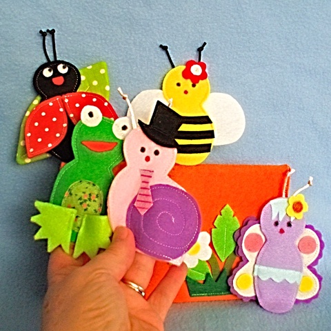 jucării și echipamente pentru copii, marionete, mănuși marionete, primavara, cadou, mama, familie, educativ, prescolari, albina, buburuza, melc, fluture, broasca, waldorf, montessori, fetru