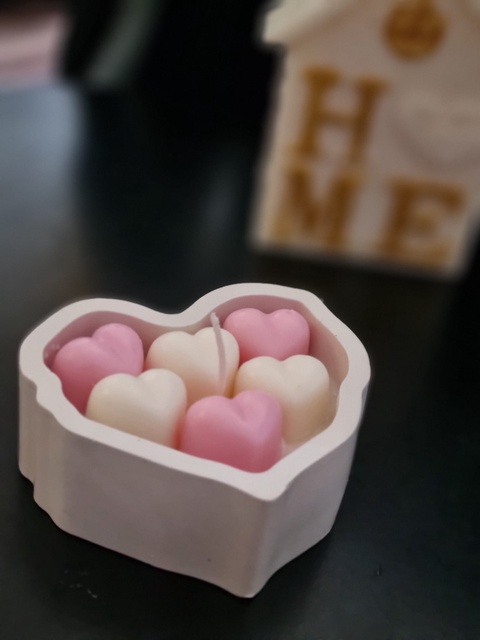 Lumânare decorativă în formă de inimă cu inimioare, creație originală