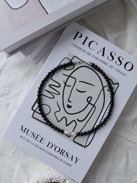 - Material: onix, argint 925, perla baroc