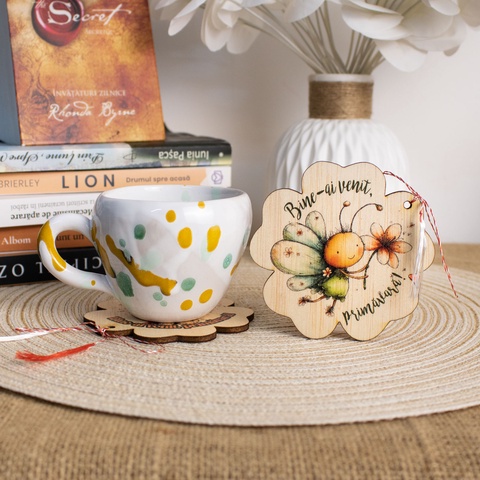 Suport de pahare din lemn, mărțișor – Fluturași colorați