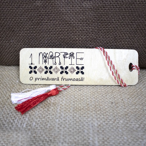 Martisor din lemn, semn de carte gravat cu motive tradionale romanesti