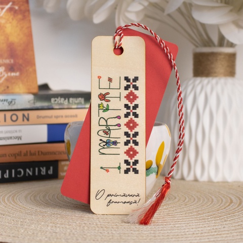 Martisor din lemn, semn de carte, personalizat, cu motive tradionale romanesti
